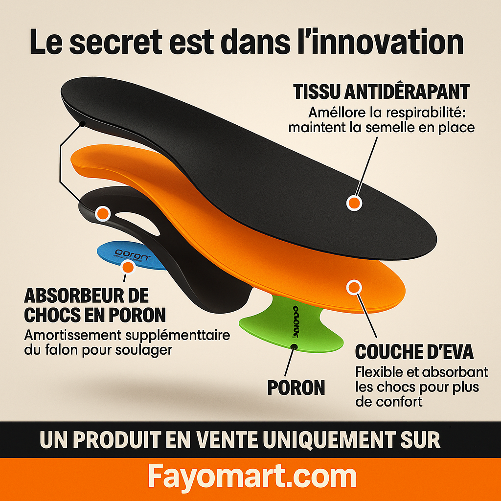 Avec nos semelles orthopédiques multicouches, Fayomart redéfinit le confort, la performance et la qualité, enfin disponibles au Maroc.