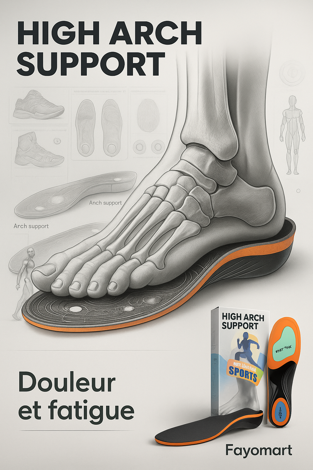 Les semelles Fayomart sont conçues pour offrir un soutien de voûte plantaire élevé qui soulage efficacement la douleur et la fatigue. Grâce à leur technologie multicouche intégrant le Poron®, elles absorbent les chocs, stabilisent la posture et favorisent un confort durable, même lors de longues journées debout ou d’activités sportives intenses.